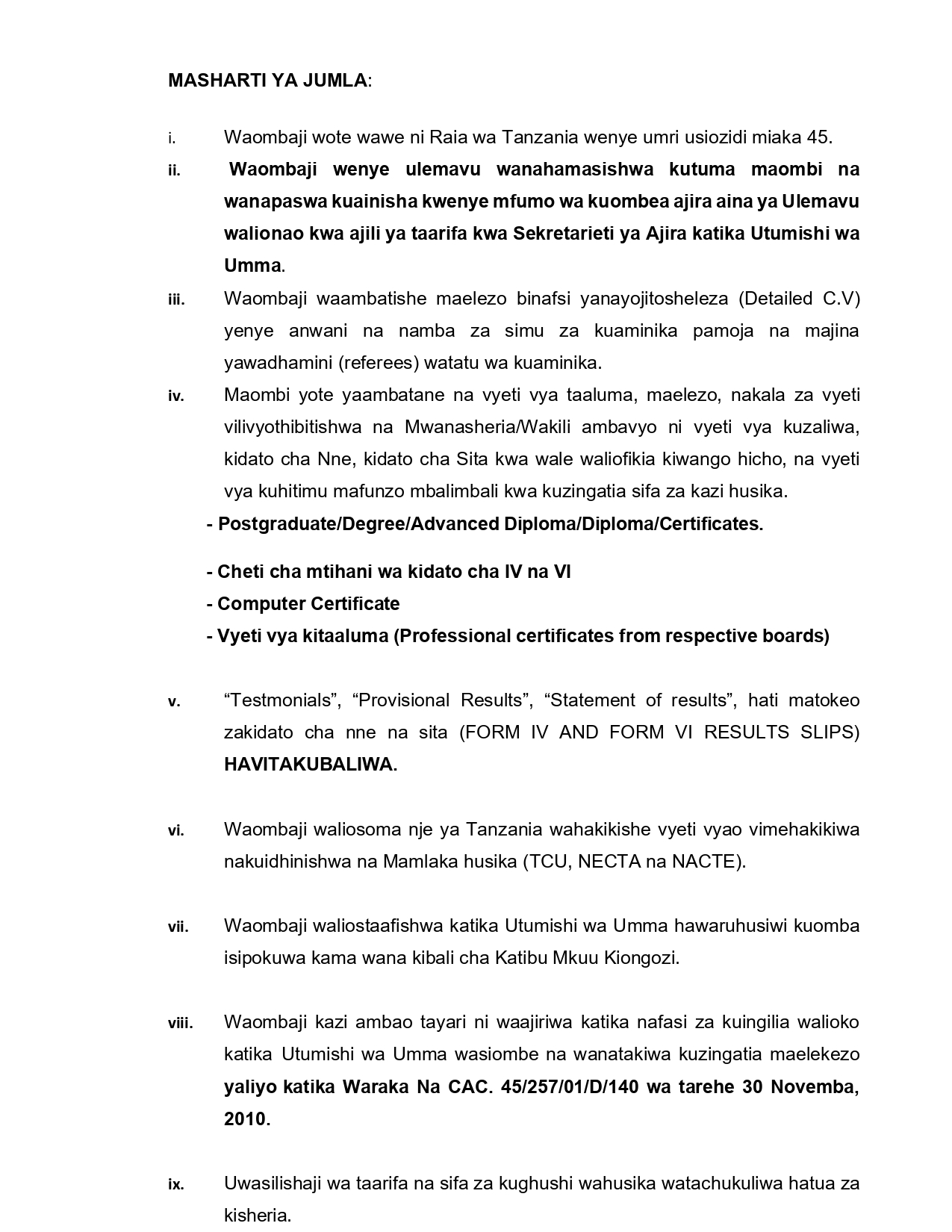 Wilaya ya Kongwa kutuma maombi ya kujaza nafasi zifuatazo;