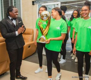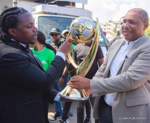 Ilikuwa ni zamu ya Meneja wetu wa Tawi la Michenzani, Ahmad Aboubakar kulipokea kombe kwa bashasha kutoka kwa Brand Ambassador.