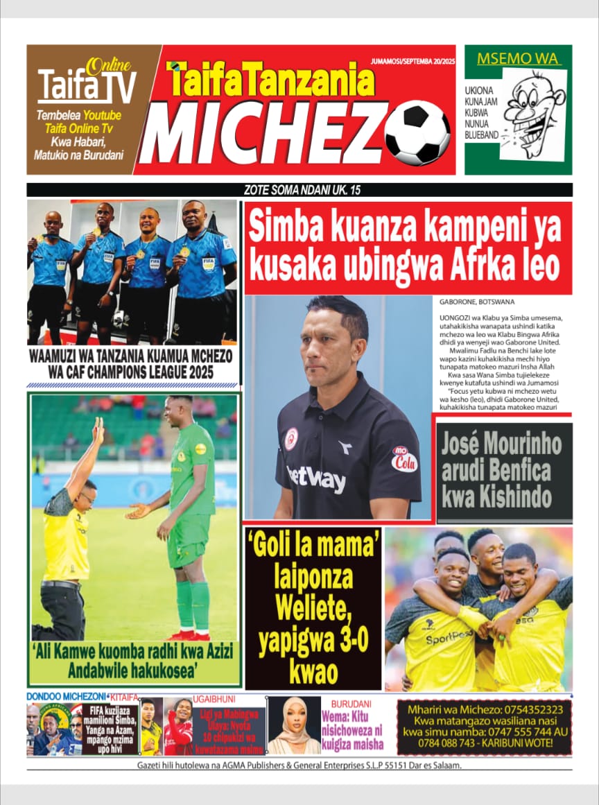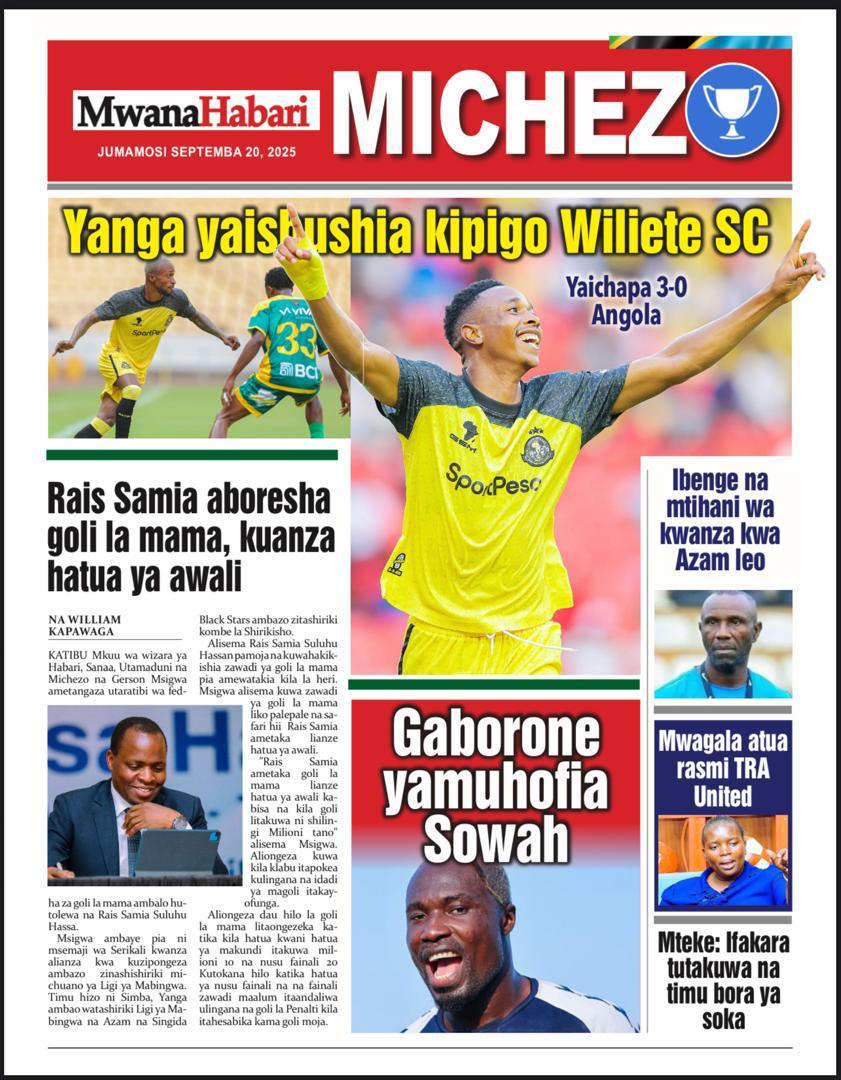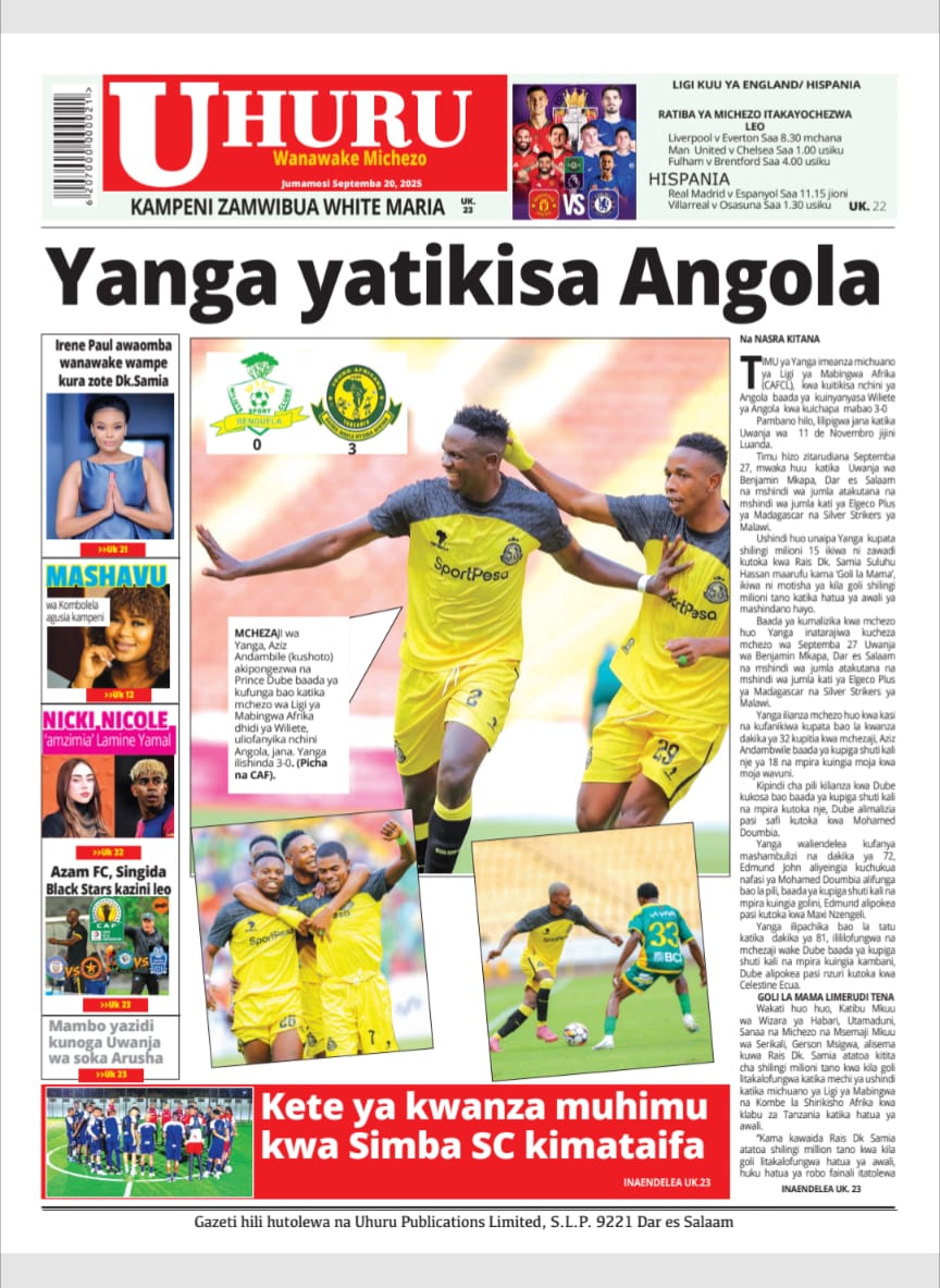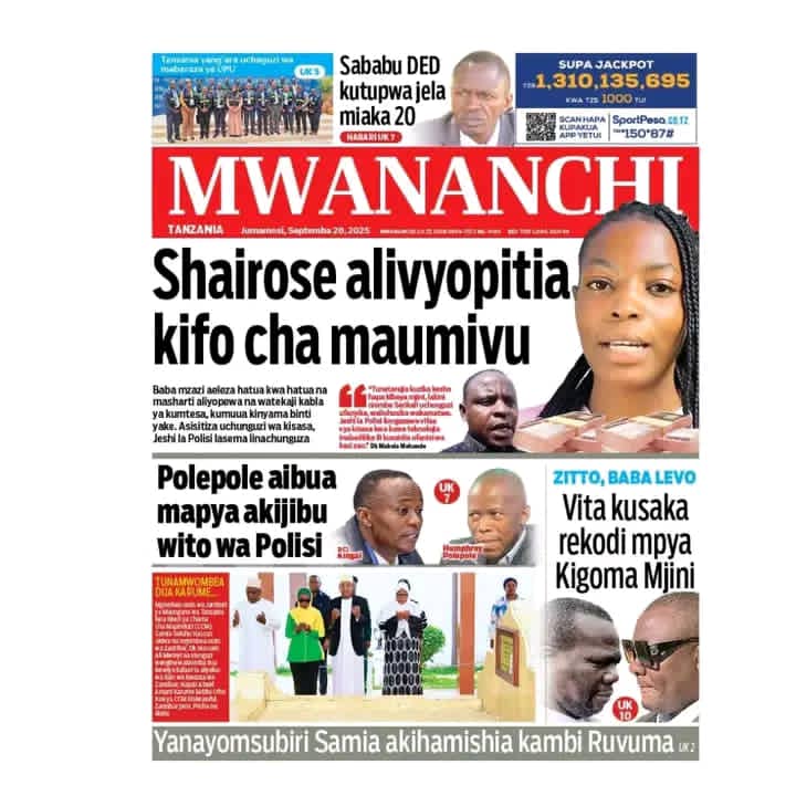 Habari kubwa za Magazeti ya Tanzania leo Septemba 20, 2025