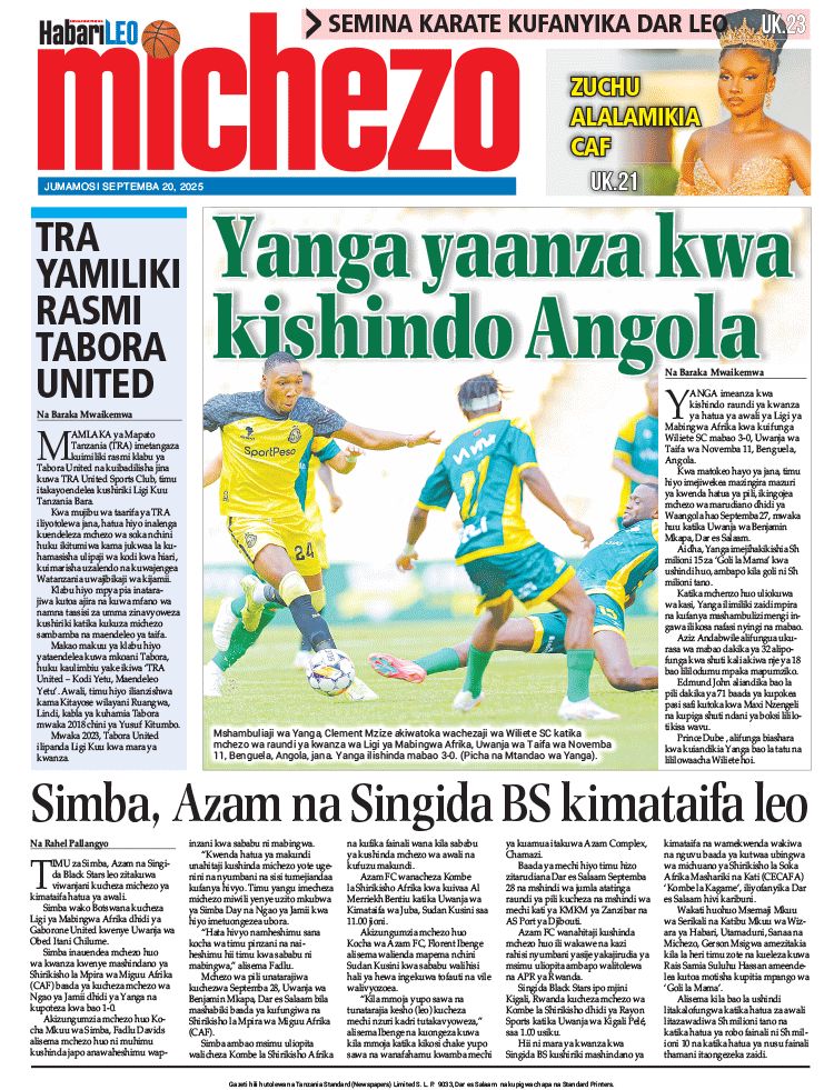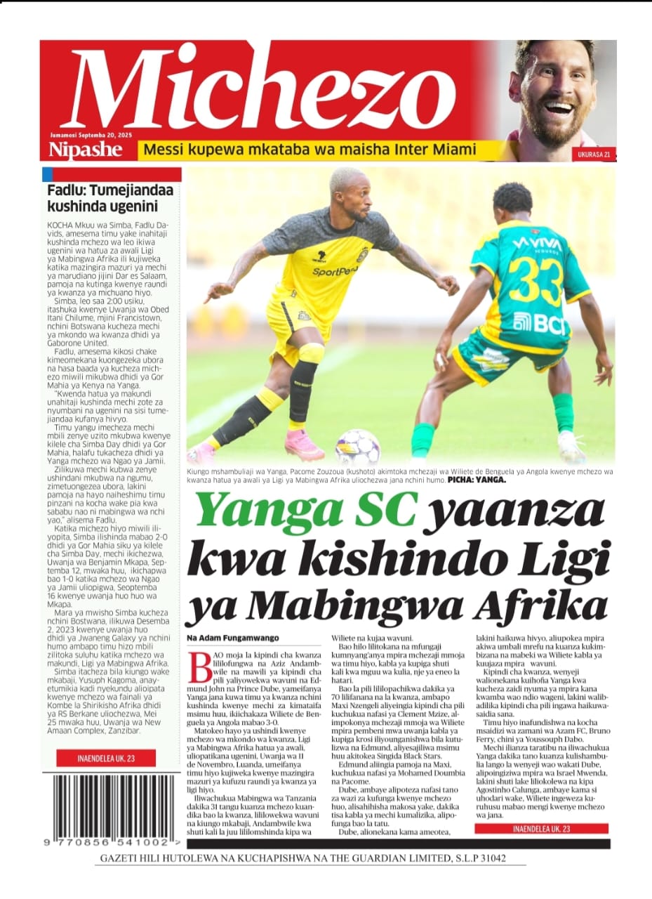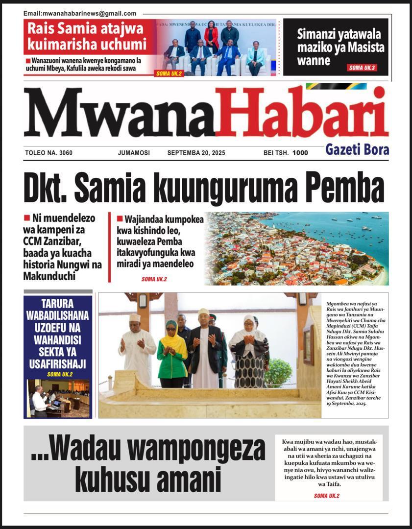 Habari kubwa za Magazeti ya Tanzania leo Septemba 20, 2025