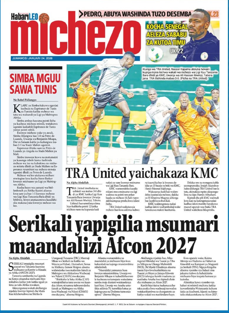 Magazeti Habari kubwa za Magazeti ya Tanzania leo Januari 24, 2025 Last updated Jan 24, 2026 0 Share Nafasi za kazi kila siku Tanzania, Serikalini, Makampuni na Taasisi mbalimbali tembelea website yetu ya Global Publishers muda wote bonyeza hapa Publishers muda wote bonyeza hapa Related 0 Share