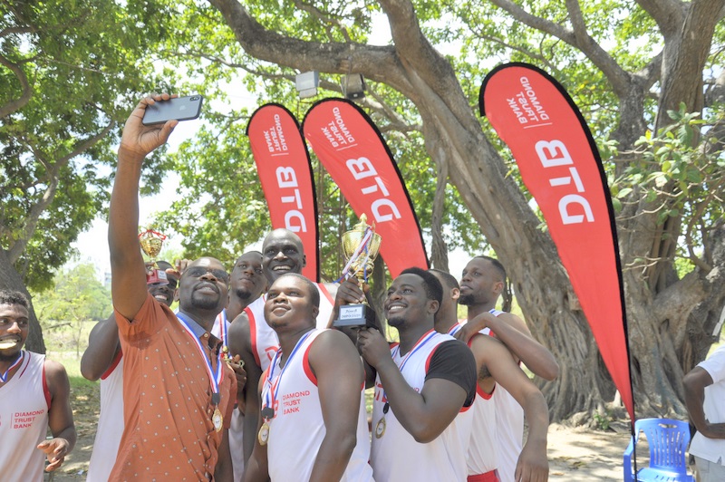 Wachezaji wa timu ya kikapu ya DTB Tanzania wakipiga picha aina ya ‘Selfie’ baada ya kuibuka washindi.