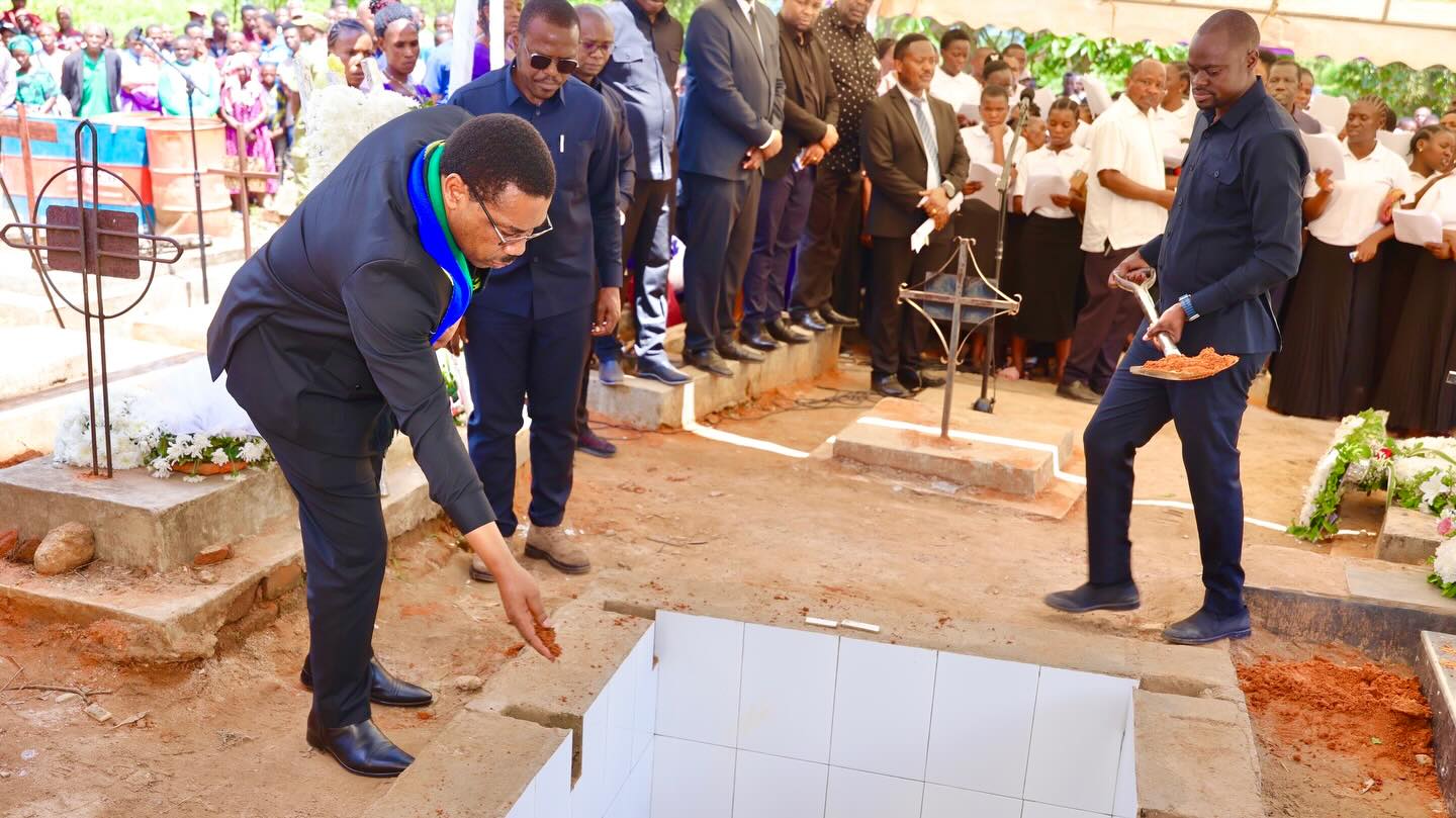 Makamu wa Rais wa Jamhuri ya Muungano wa Tanzania Mhe.Balozi Dkt. Emmanuel Nchimbi aliwaongoza waombolezaji kwenye mazishi hayo.
