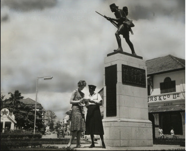Mahali pa sanamu hii iliwahi kuwa na sanamu ya meja Hermann von Wissmann aliyekuwa gavana wa kwanza wa Afrika ya Mashariki ya Kijerumani na sanamu hii ilibomolewa na Waingereza walipoteka mji katika mwaka 1916.