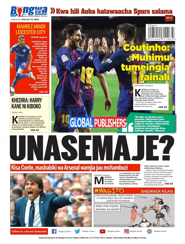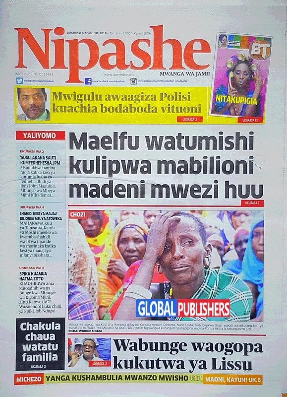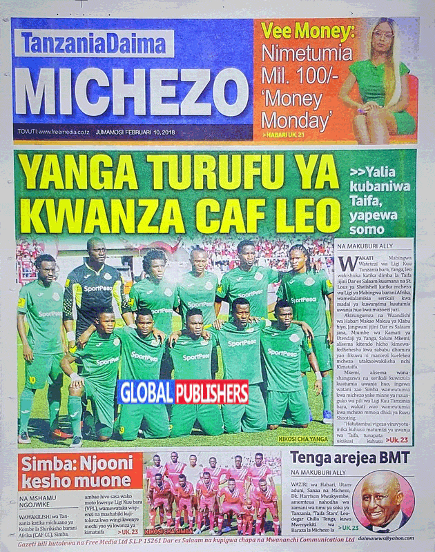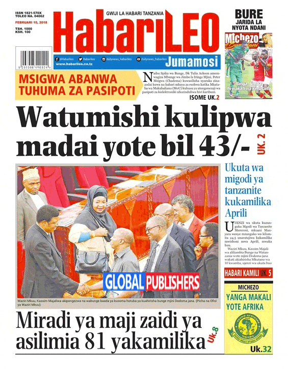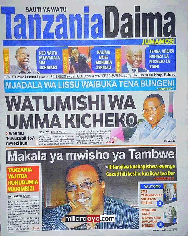 MAGAZETI YA TANZANIA LEO JUMAMOSI, FEB 10, 2018