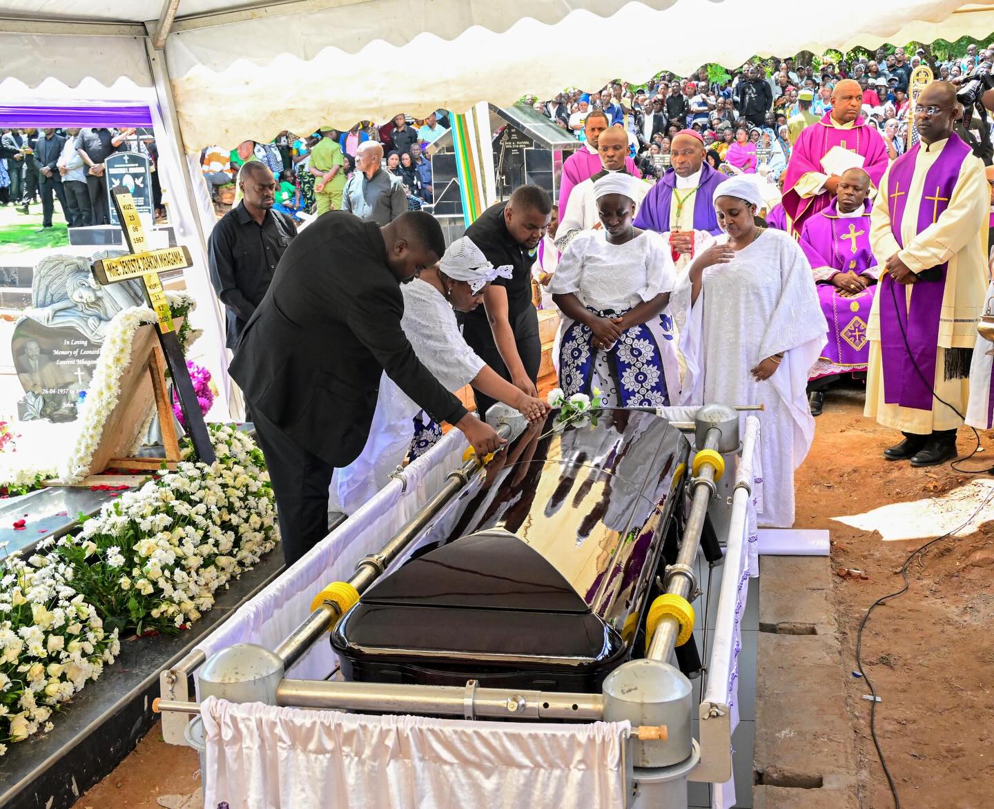 Makamu wa Rais wa Jam huri ya Muungano wa Tanzania, Balozi Dkt. Emmanuel Nchimbi amewaongoza waombolezaji kwenye Mazishi ya aliyekuwa Mbunge wa Jimbo la Peramiho, Marehemu Jenista Mhagama, yaliyofanyika katika Kijiji cha Ruanda Wilaya ya Mbinga mkoani Ruvuma leo tarehe 16 Desemba 2025.