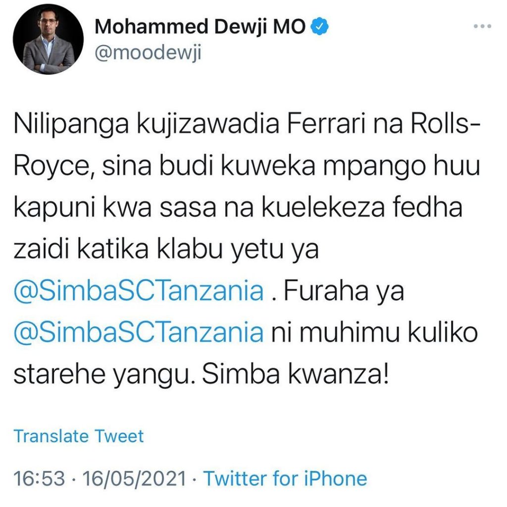 Mo Dewji Asitisha Kununua Ferrari na Rolls-Royce