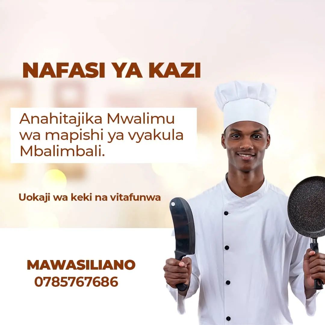 Nafasi ya kazi! Anahitajika mwalimu wa mapishi ya vyakula mbalimbali ikiwemo uokaji wa keki na vitafunwa.