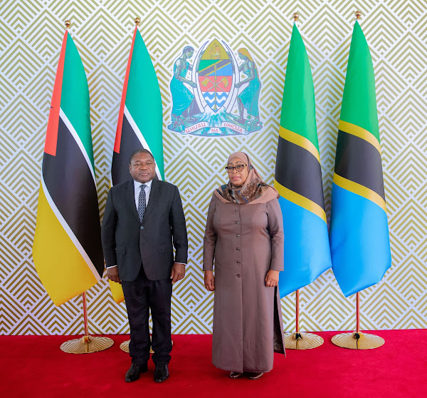 Rais wa Jamhuri ya Muungano wa Tanzania, Samia Suluhu Hassan, amempokea Rais wa Jamhuri ya Msumbiji, Filipe Jacinto Nyusi, katika hafla ya mapokezi rasmi iliyofanyika Ikulu jijini Dar es Salaam leo, tarehe 02 Juni 2024.