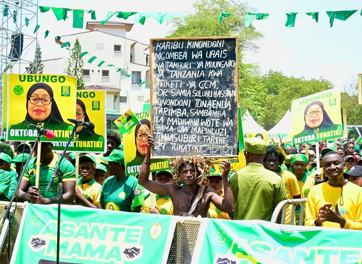 Mgombea Urais kupitia Chama Cha Mapinduzi (CCM) na Rais wa Jamhuri ya Muungano wa Tanzania, Dkt. Samia Suluhu Hassan, amewataka wananchi wa Mkoa wa Dar es Salaam kujitokeza kwa wingi kupiga kura siku ya Oktoba 29, 2025, huku akisisitiza kuwa hakutakuwa na maandamano yoyote nchini siku hiyo.