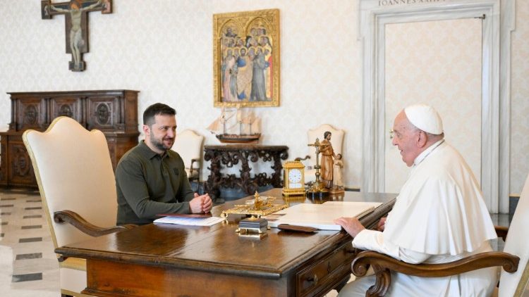 Papa Francis leo Ijumaa Oktoba 11, 2024 amekutana na kuzungumza na Rais Volodymyr Zelenskyy wa Ukraine ambaye baadaye amepata nafasi ya kukutana na kuzungumza pia na Kardinali Pietro Parolin, Katibu mkuu wa Vatican aliyekuwa ameambatana na Askofu mkuu Paul Richard Gallagher, Katibu mkuu wa Mambo ya Nchi za Nje, Ushirikiano na Mashirika ya Kimataifa.