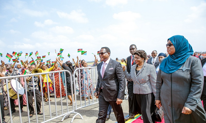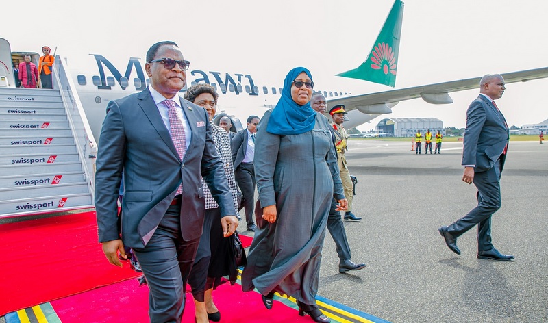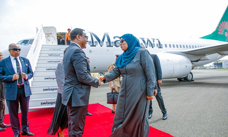Alipowasili katika Uwanja wa Ndege wa Kimataifa wa Julius Nyerere, Dkt. Chakwera alilakiwa Waziri wa Nchi Ofisi ya Rais Fedha na Mipango Zanzibar Dkt. Saada Mkuya, Naibu Waziri wa Mambo ya Nje na Ushirikiano wa Afrika Mashariki Cosato Chumi na maafisa waandamizi wa serikali